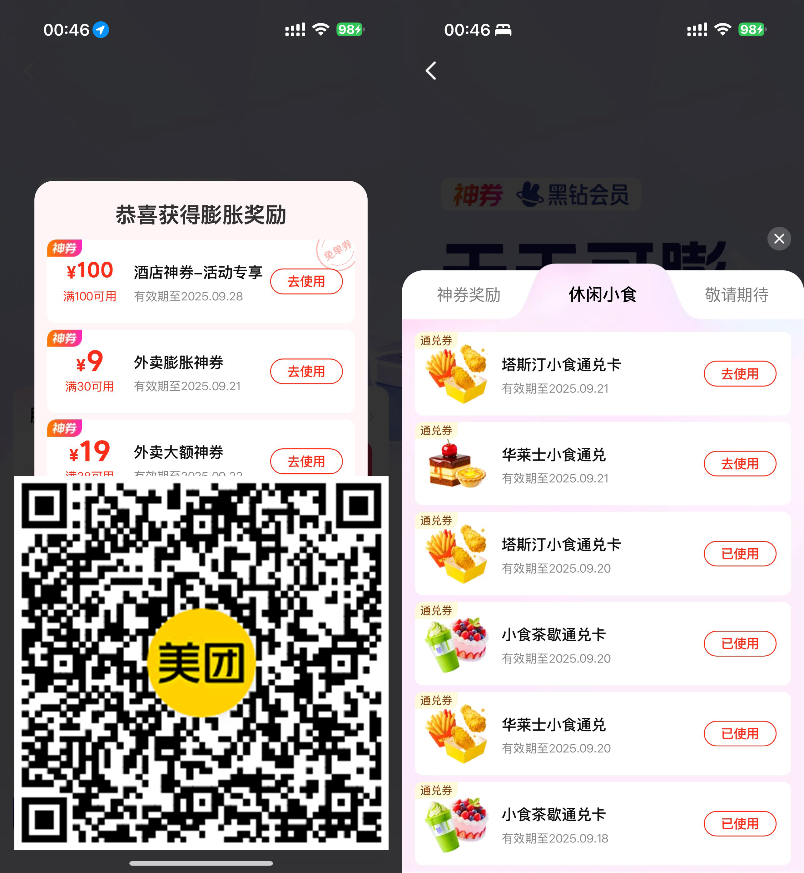 美团APP扫码->所有人可每天抽小食通兑免单券,还有大疆相机和16亓闪购券
